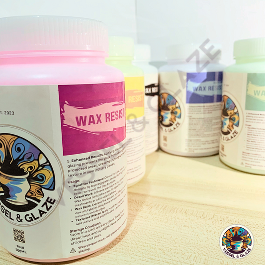 Gum Solution and Wax Resist are essential glazing aids. Gum Solution improves glaze adhesion, while Wax Resist prevents glaze from adhering to specific areas, enabling intricate designs on bisque-fired ceramics.