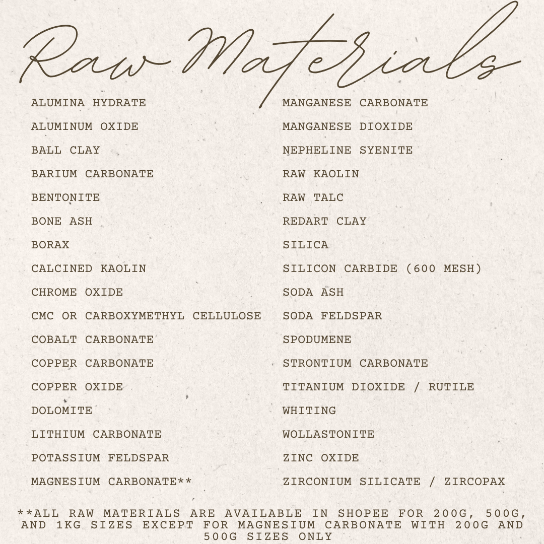 NOTE: All Raw Materials are very fine-grained (200-325 Mesh).